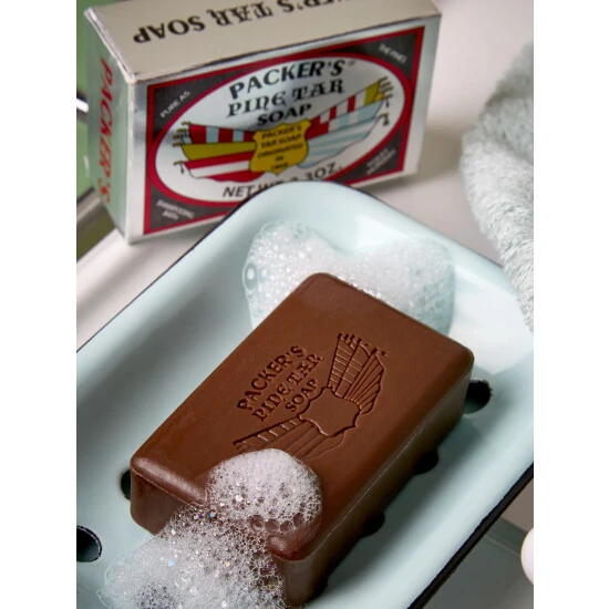 For generations, doctors have recommended pine tar soap for natural relief from minor skin and scalp troubles, such as eczema and dandruff. Our customers say it also takes the “bite” out of insect bites. Every bar is formulated with natural pine tar and is deeply cleansing, moisturizing, and deodorizingβand ideal for showering, shampooing, and facial grooming.β