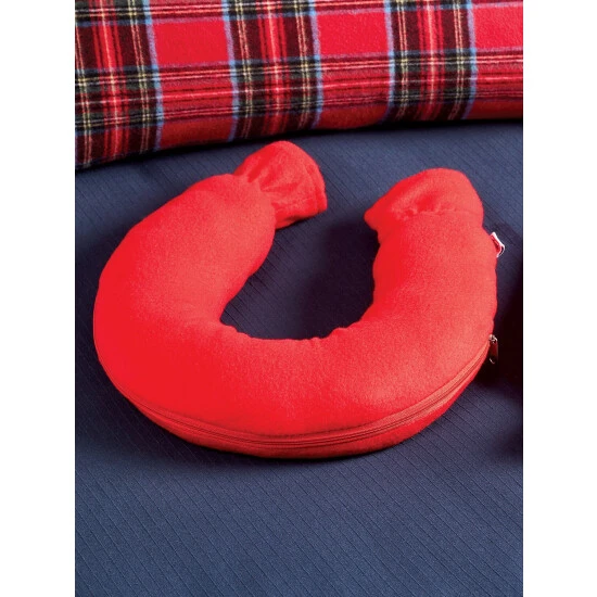 Suffering from a stiff or sore neck? This U-shaped hot water bottle comfortably cradles your neck so you can deliver soothing heat to those hard-to-reach muscles without having to hold it in place. And since this hot water bottle is made from real rubber and not cheap plastic, it will stand up to years of reliable use. Includes a washable polyester fleece cover.