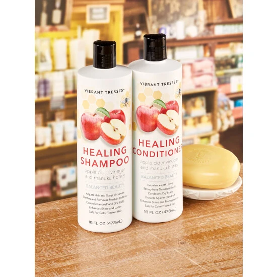We’ve created this dynamic duo to bring the natural benefits of apple cider vinegar to your hair and scalp. The shampoo helps to detoxify and clarify the scalp, plus it helps to balance pH levels, which helps control dandruff. It also contains alpha-hydroxy acid, which gently exfoliates the scalp, removing dead skin cells, dirt, oils, and product build-upβall without stripping the hair of its natural oils. The conditioner smooths away frizz and split ends and fortifies the cuticle to reduce breakage. Both formulas work together to enhance shine and manageability, and to keep your scalp healthy.